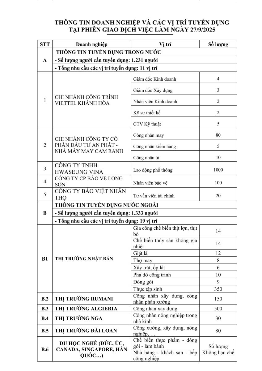 Phiên Giao dịch việc làm tại Xã Đông Khánh Sơn, ngày 27/9/2025