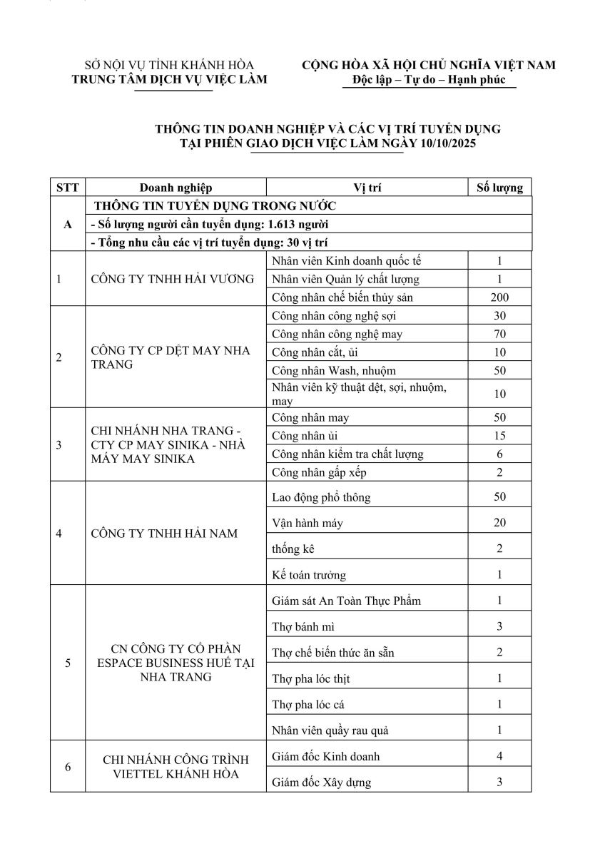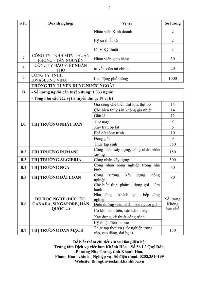 TRUNG TÂM DỊCH VỤ VIỆC LÀM KHÁNH HÒA