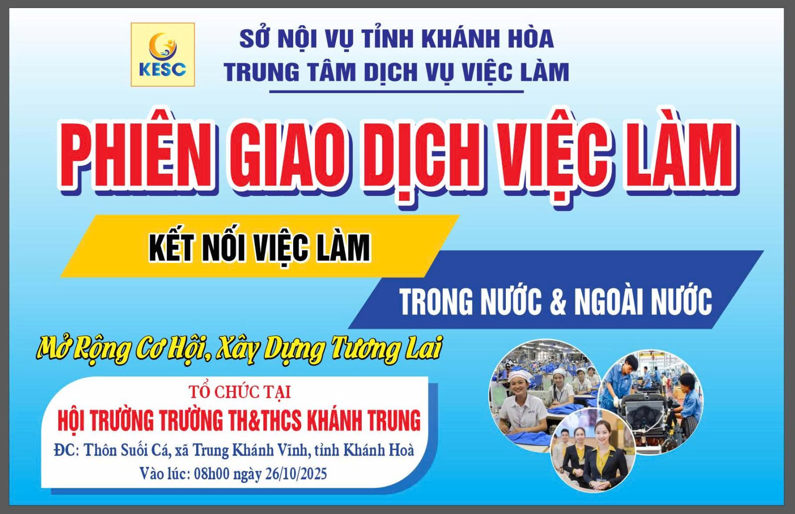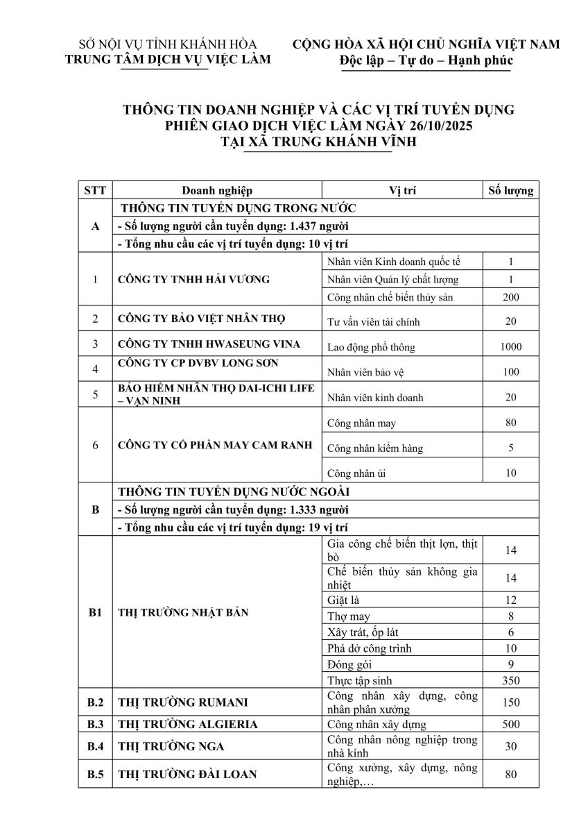 PHIÊN GIAO DỊCH VIỆC LÀM NGÀY 26/10/2025 TẠI XÃ TRUNG KHÁNH VĨNH