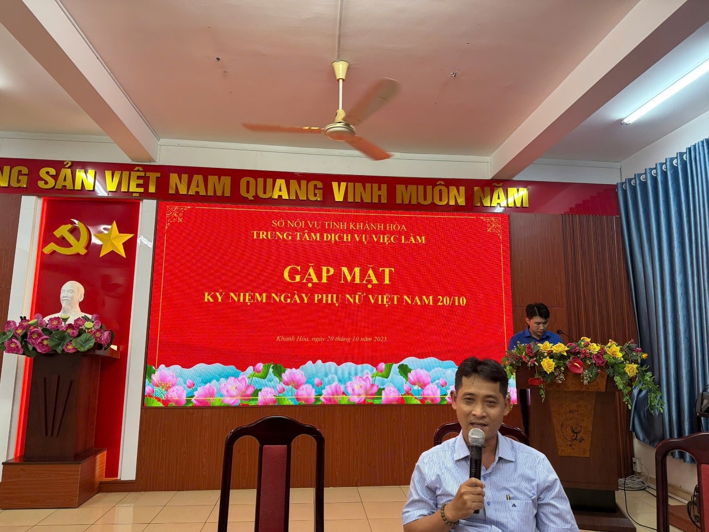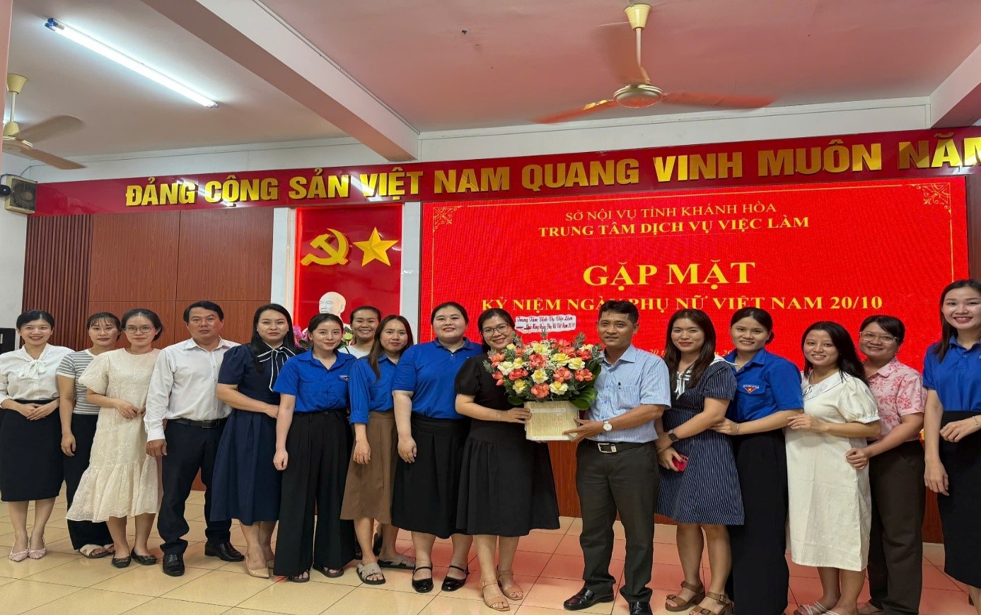 Nhân dịp Kỷ niệm 95 năm Ngày thành lập Hội Liên hiệp Phụ nữ Việt Nam 20/10 (1930-2025) và 15 năm Ngày Phụ nữ Việt Nam 20/10 (2010-2025), Trung tâm Dịch vụ việc làm Khánh Hòa đã tổ chức buổi gặp mặt chiều ngày 20/10/2025. Tham dự buổi gặp mặt gồm có ông Trần Đại Dương – Bí thư Chi bộ, Giám đốc Trung tâm; ông Nguyễn Thanh Xuân – Phó Giám đốc Trung tâm cùng toàn thể viên chức và người lao động của đơn vị.