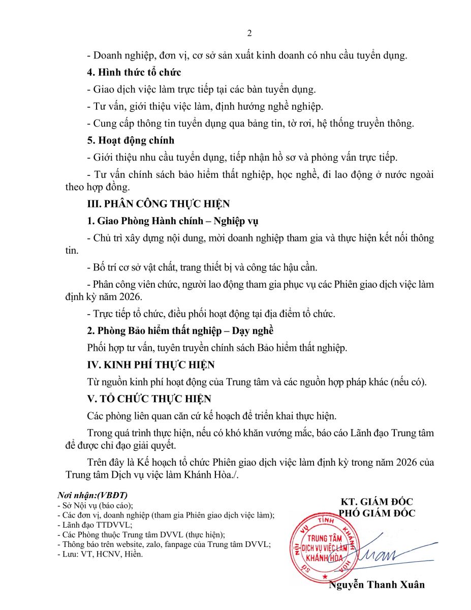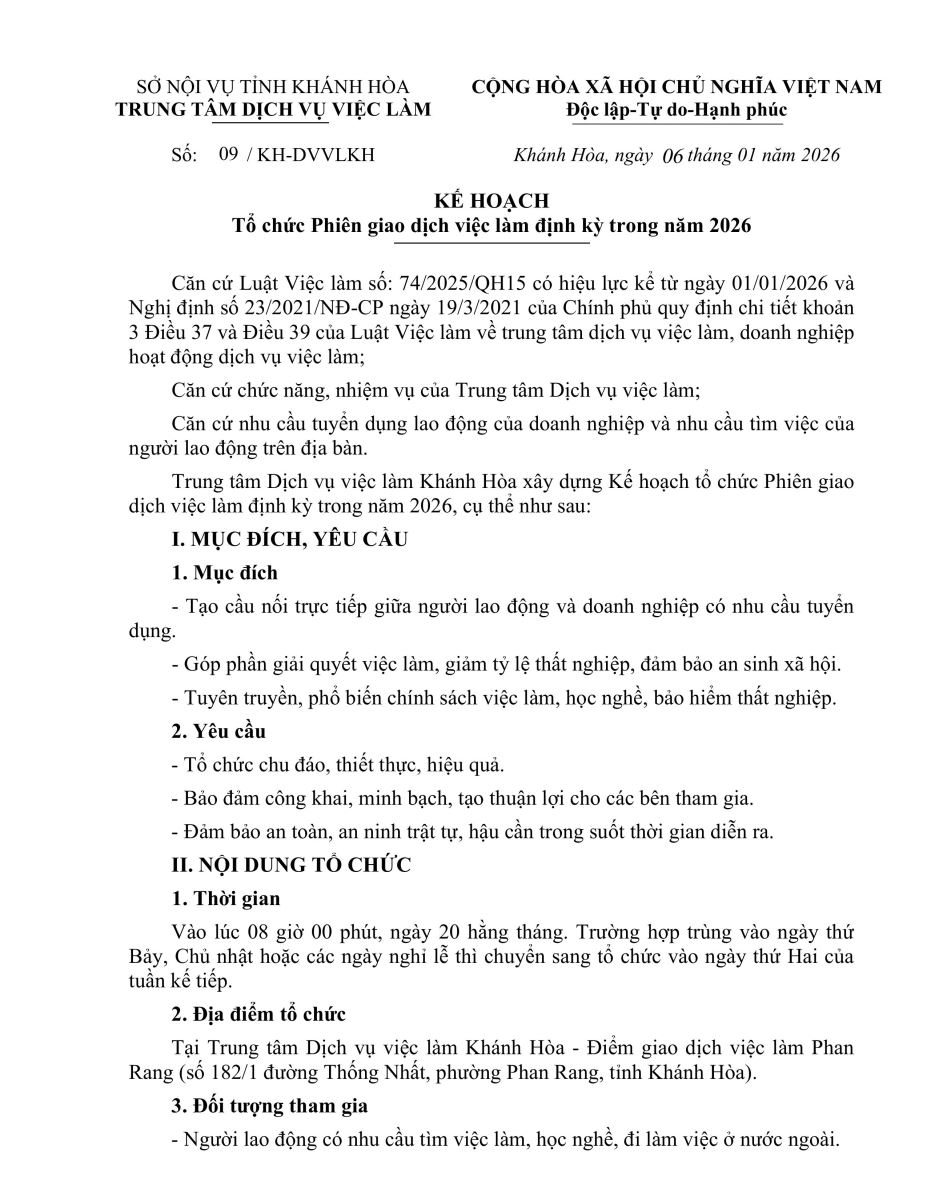 Kế hoạch Tổ chức Phiên giao dịch việc làm định kỳ trong năm 2026