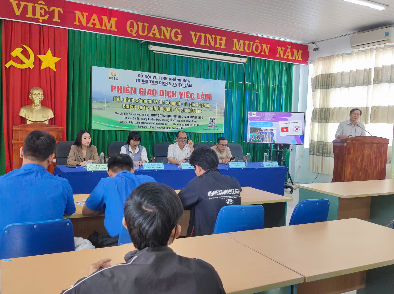 Thực hiện Kế hoạch số 09/KH-DVVLKH ngày 06/01/2026 của Trung tâm Dịch vụ việc làm Khánh Hòa về việc tổ chức Phiên giao dịch việc làm định kỳ trong năm 2026. Sáng ngày 20/01/2026, tại Trung tâm Dịch vụ việc làm Khánh Hòa – Điểm giao dịch việc làm Phan Rang, Trung tâm đã tổ chức Phiên giao dịch việc làm nhằm kết nối việc làm giữa người lao động và doanh nghiệp, góp phần thúc đẩy thị trường lao động địa phương phát triển.