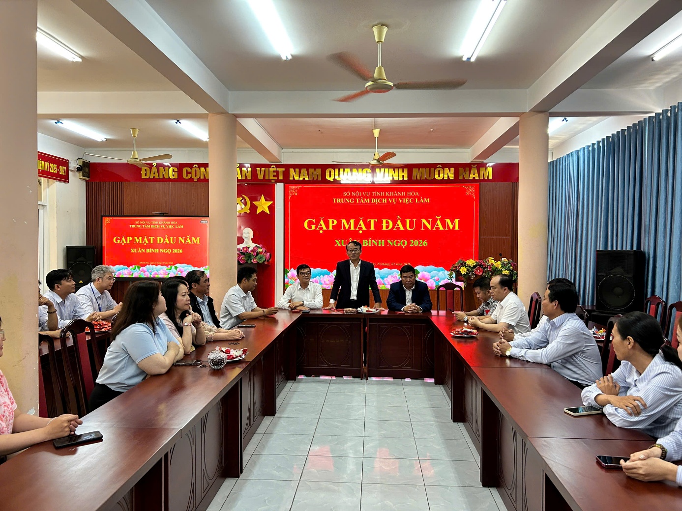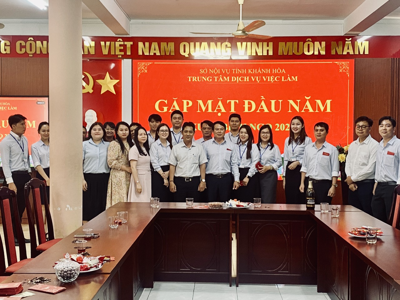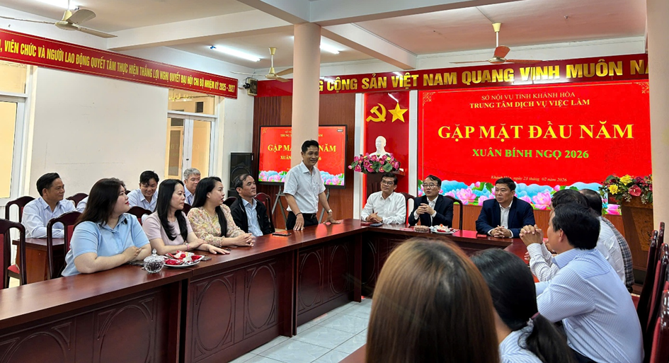 Nhân dịp năm mới, lãnh đạo Sở Nội vụ gửi lời chúc mừng năm mới sức khỏe, hạnh phúc, an khang, thịnh vượng đến toàn thể viên chức, người lao động Trung tâm Dịch vụ việc làm Khánh Hòa; mong muốn tập thể Trung tâm tiếp tục nỗ lực, hoàn thành tốt mọi nhiệm vụ được giao trong năm mới.