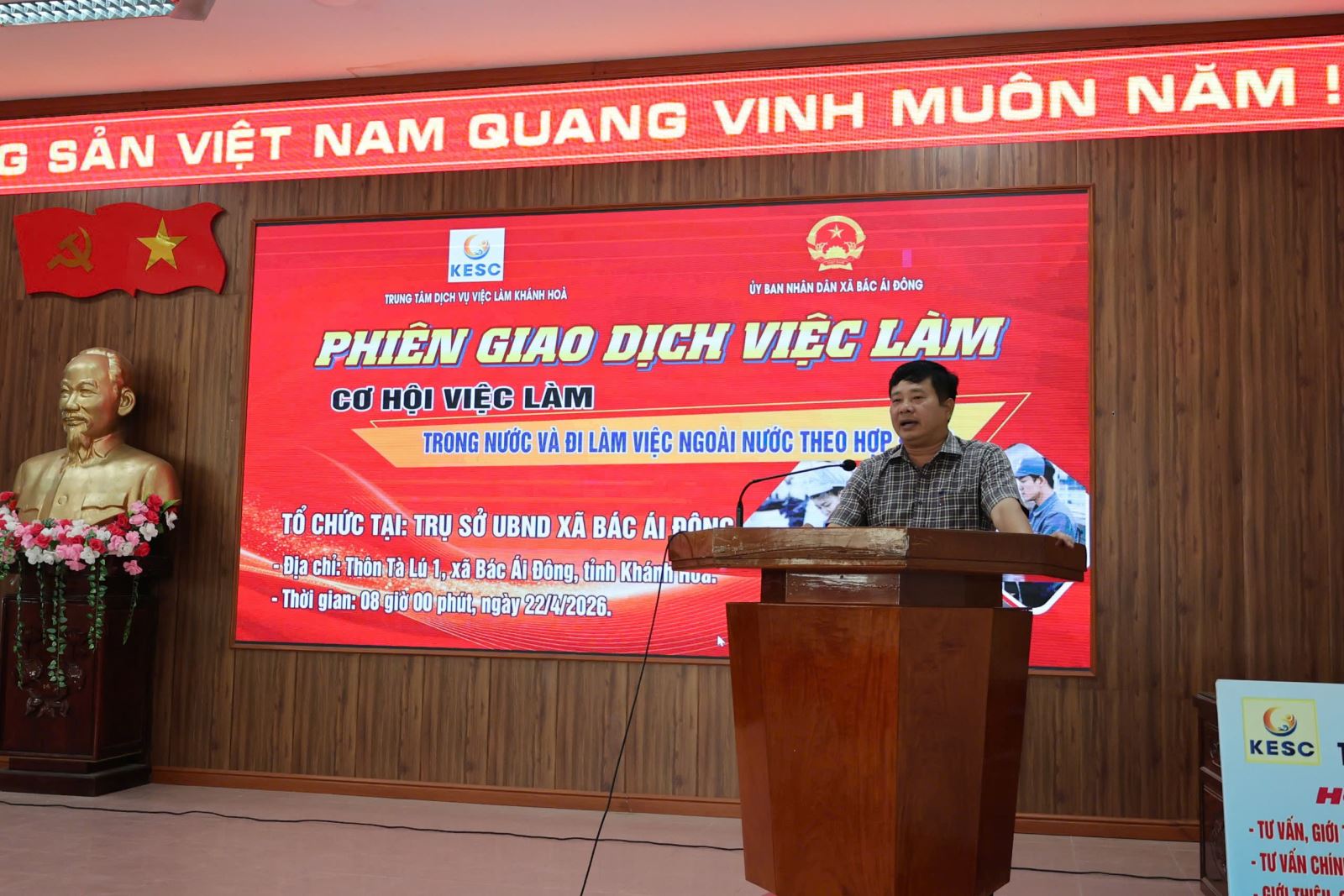Thực hiện Kế hoạch số 326/KH-DVVLKH ngày 09/4/2026 của Trung tâm Dịch vụ việc làm Khánh Hòa về việc phối hợp tổ chức Phiên giao dịch việc làm tại xã Bác Ái Đông. Sáng ngày 22/4/2026, Trung tâm Dịch vụ việc làm Khánh Hòa phối hợp với Ủy ban nhân dân xã Bác Ái Đông tổ chức Phiên giao dịch việc làm tại xã Bác Ái Đông nhằm kết nối việc làm giữa người lao động và doanh nghiệp, góp phần thúc đẩy thị trường lao động địa phương phát triển.