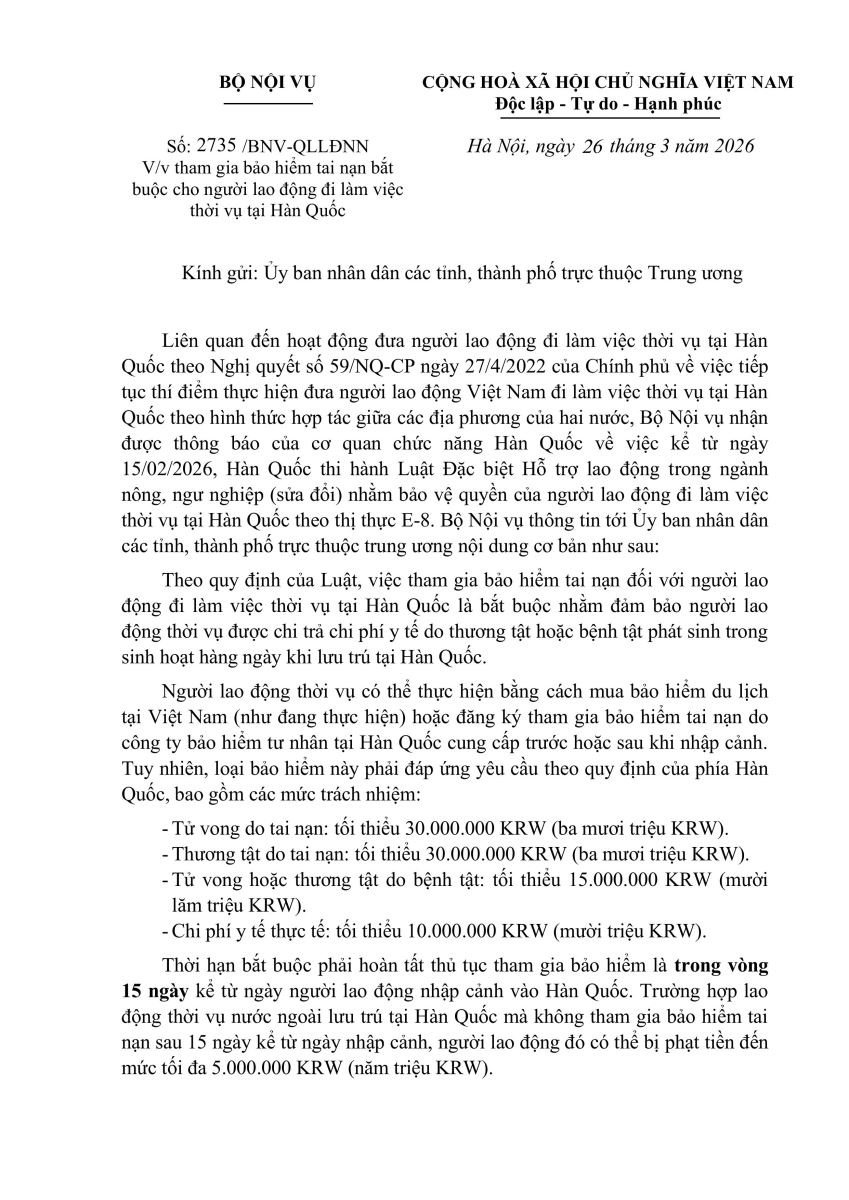 Triển khai thông tin việc tham gia bảo hiểm tai nạn bắt buộc cho người lao động đi làm việc thời vụ tại Hàn Quốc