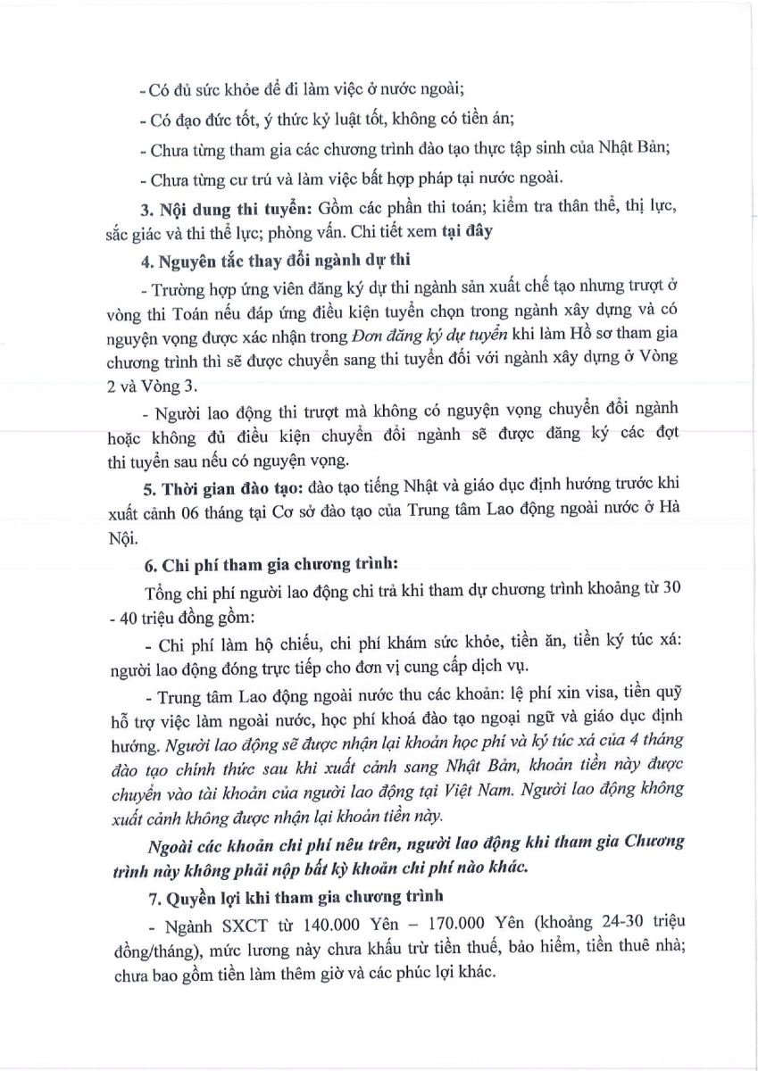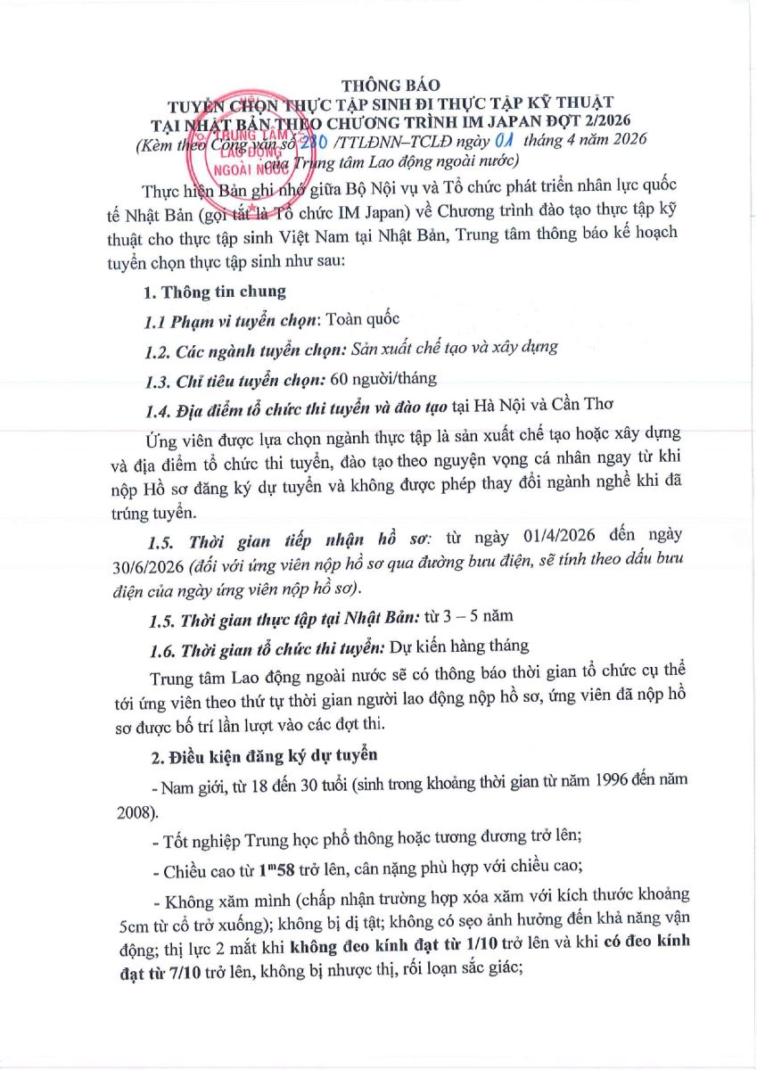 Thông báo tuyển chọn ứng viên tham gia chương trình thực tập sinh đi thực tập kỹ thuật tại Nhật Bản.