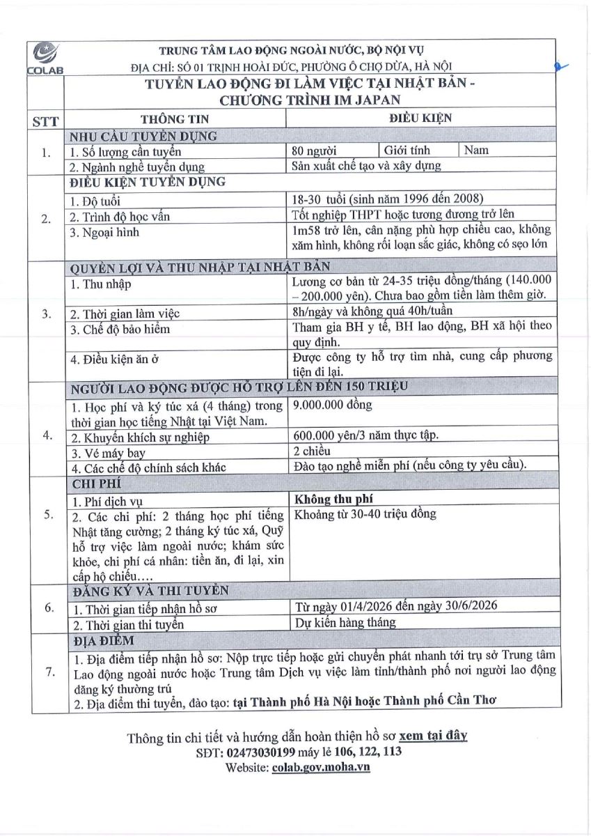 THÔNG BÁO TUYỂN THỰC TẬP SINH ĐI THỰC TẬP TẠI NHẬT BẢN